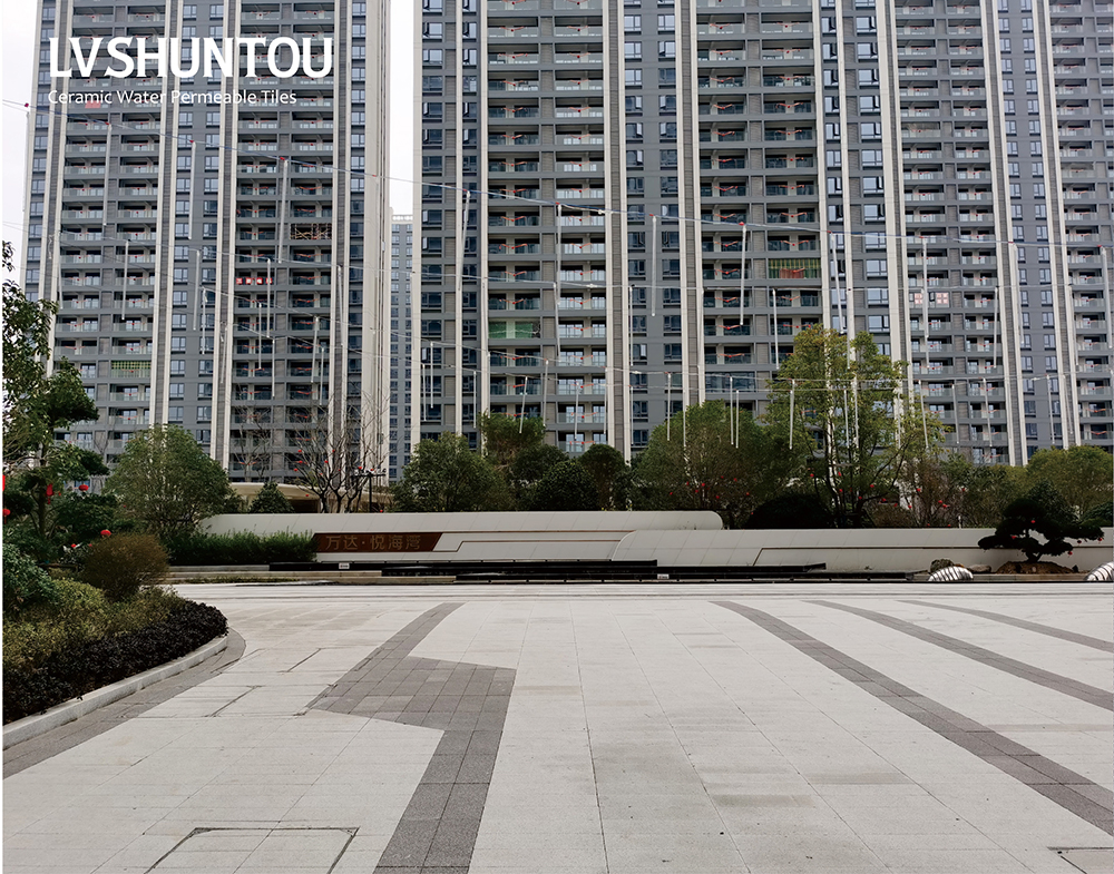 公司為響應國家建設海綿城市,解決現代化城市“防止內澇,地表硬化, 熱島效應”營造高質量的自然生活環境做出貢獻。 綠順透水磚采用陶瓷廢料為主原料,經過二次布料成型,高溫燒成,是具有保持地面透水性、保溫性、抗壓、吸音、降噪、防滑、耐風化、抗寒可重復使用等優點的綠色環保產品。